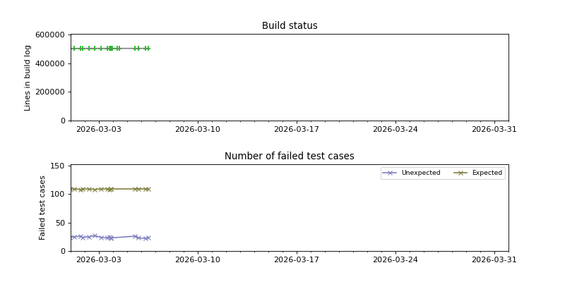 The plots are constructed by looking for changes in the success/failure status of the periodic builds as well as significant changes in the size of the build log, and then pinpointing the time when the change occurred using binary search. Note that this is not guaranteed to find every build failure, because it can miss cases where the build is broken and then fixed again between two consecutive periodic builds. The converse case, when the build is fixed and then broken again between two consecutive periodic builds, is usually detected because the size of the build log has changed.