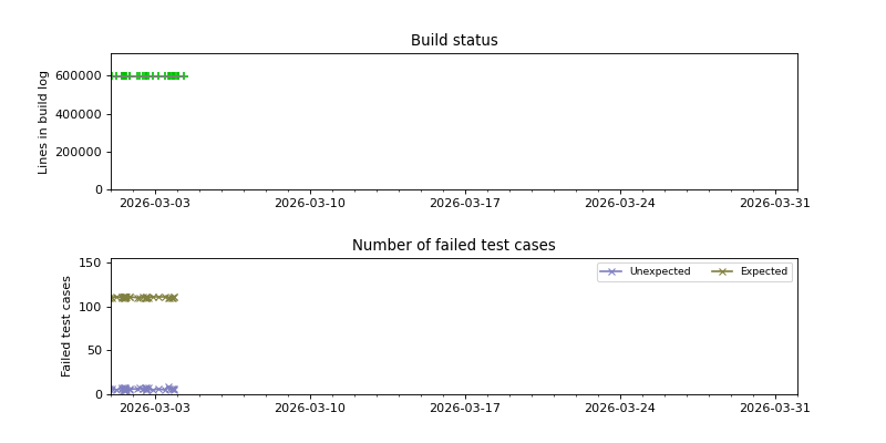 The plots are constructed by looking for changes in the success/failure status of the periodic builds as well as significant changes in the size of the build log, and then pinpointing the time when the change occurred using binary search. Note that this is not guaranteed to find every build failure, because it can miss cases where the build is broken and then fixed again between two consecutive periodic builds. The converse case, when the build is fixed and then broken again between two consecutive periodic builds, is usually detected because the size of the build log has changed.